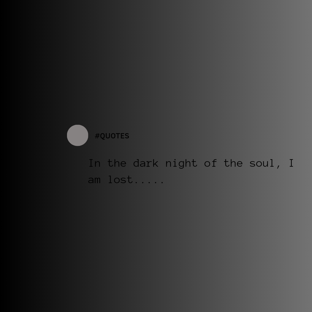 In the dark night of the soul, I am lost,